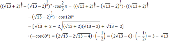 pamiętając, że cosinus w drugiej ćwiartce układu współrzędnych przyjmuje wartości ujemne – stąd minus przed wartością cosinusa.
