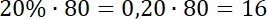 Wyznacz 20% liczby 80.