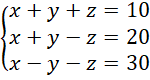 w pierwszym i trzecim równaniu są przeciwne, dodaj więc je do siebie stronami i z powstałego równania wyznacz wartość