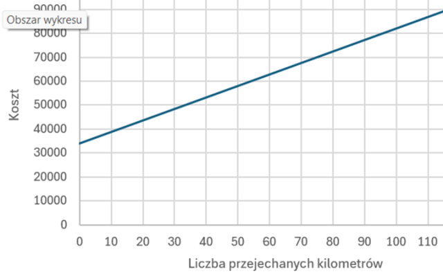 . Zauważ, że koszt za paliwo jest współczynnikiem kierunkowym, a koszt ceny samochodu wyrazem wolnym.
