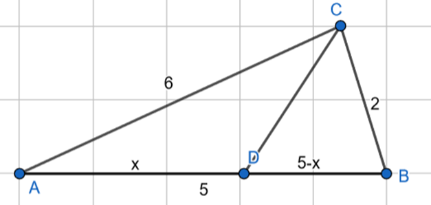 Skorzystaj z tego, że dwusieczna kąta w trójkącie dzieli przeciwległy bok na odcinki proporcjonalne do pozostałych boków trójkąta. Zapisz to za pomocą równania i wyznacz z niego wartość