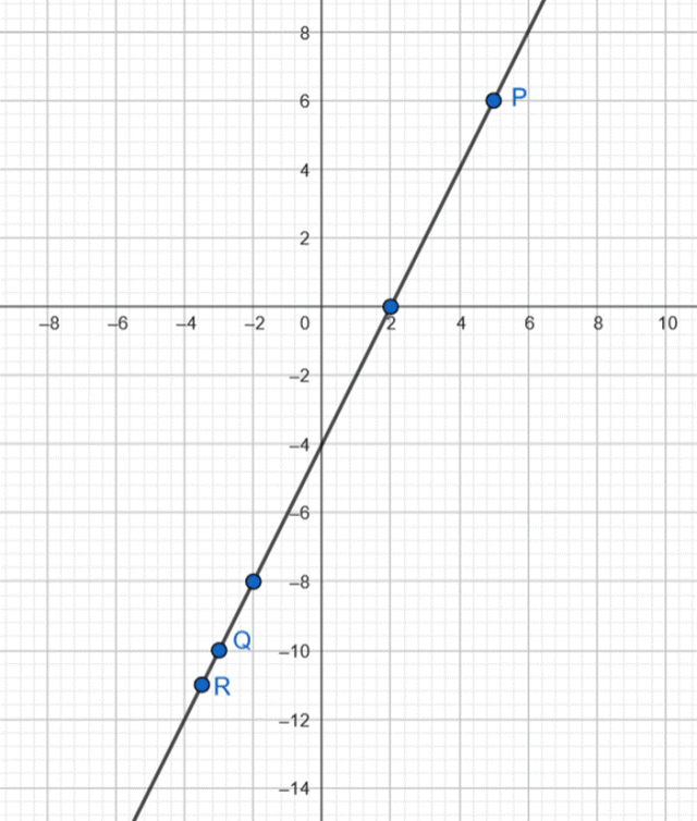Na koniec ustal, które z podanych punktów P, Q, R należą do wykresu podanej prostej.
