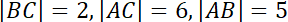 Oblicz długości odcinków na jakie dwusieczna kąta ACB dzieli bok AB, jeśli .