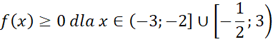 Na podstawie podanego wykresu funkcji odczytaj jego dziedzinę, zbiór wartości i przedziały monotoniczności (kiedy funkcja rośnie, maleje, jest stała) oraz zapisz dla jakich argumentów wykres funkcji znajduje się na lub nad osią OX.