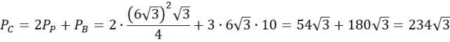 Wyznacz pole powierzchni całkowitej graniastosłupa prawidłowego trójkątnego o wysokości 10, jeśli promień okręgu opisanego na jego podstawie jest równy 6.