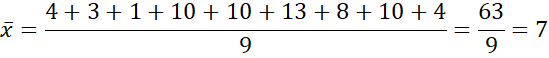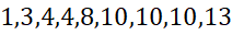 Wyznacz średnią arytmetyczną, medianę i dominantę podanych liczb. 4, 3, 1, 10, 10, 13, 8, 10, 4