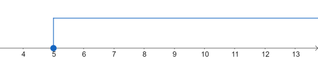 Zaznacz początek przedziału i wszystkie liczby większe od niego. Przedział jest domknięty na 5, więc kropka powinna być zakolorowana.