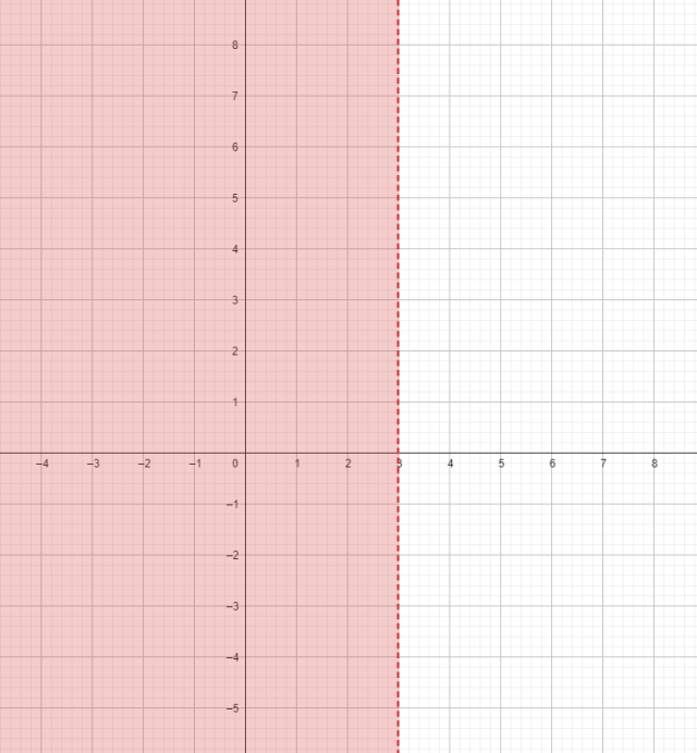 Zbiór punktów spełniających nierówność tworzy półpłaszczyznę (otwartą, bo znak nierówności jest mocny) na lewo od prostej .