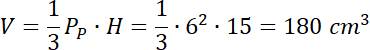 Ze wzoru na objętość podstawy wyznacz długość jej krawędzi i oblicz objętość bryły.