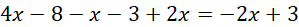 Rozwiąż podane równania. Wykonaj operacje mnożenia na podanych nawiasach. Pamiętaj, że zarówno dzielenie, jak i mnożenie nawiasu przez liczbę, to dzielenie lub mnożenie każdego elementu tego nawiasu przez tę liczbę. Następnie wykonaj operacje dodawania i odejmowania na otrzymanych w wyrażeniach wyrazach podobnych. Pamiętaj, że kombinacje liter, ich iloczynów i potęg muszą być takie same, różnić się zaś mogą jedynie czynnikiem liczbowym.