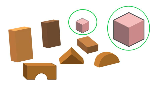 Zaznacz sześciany zielonym kolorem.