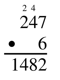 Mnożąc przez liczby jednocyfrowe pisemnie, obliczenia rozpocznij od rzędu jedności i idź kolejno przez wszystkie cyfry. Jeśli z mnożenia liczb wychodzi liczba dwucyfrowa to cyfrę jedności zapisz pod kreską ułamkową, a cyfrę dziesiątek nad następną cyfrą górnej liczby.