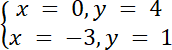 Punkty wspólne równań: (0, 4), (–3, 1)