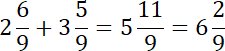 Dodając do siebie liczby mieszane, na początku zsumuj części całkowite, następnie zsumuj części ułamkowe. Jeżeli to możliwe, skróć część ułamkową. Gdy otrzymany ułamek jest ułamkiem niewłaściwym, wyciągnij całości i dodaj je do części całkowitej.