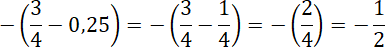 Zamień np. ułamek dziesiętny na zwykły (skorzystaj z ilustracji). Liczba o większej wartości bezwzględnej jest dodatnia, więc wynik będzie ze znakiem plus. Wykonaj odejmowanie wartości bezwzględnych tych liczb (od większej odejmij mniejszą wartość bezwzględną) i zapisz odpowiedni znak. Teraz zmień znak, ponieważ przed nawiasem stoi minus.