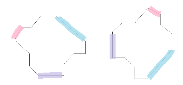Odpowiedz na pytanie, czy te wielokąty są przystające i w razie odpowiedzi twierdzącej zaznacz kolorami pary boków odpowiadających.