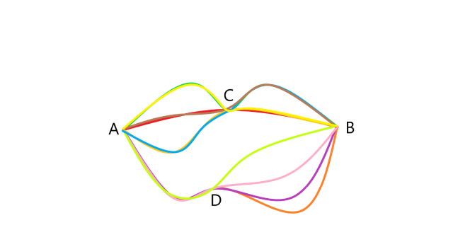W tym zadaniu musisz rozważyć, ile jest wszystkich różnych sposobów, by z A dojść do B. Zaznacz każdą z możliwości na rysunku i zapisz działanie, które pozwoli obliczyć ci ich ilość.