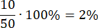 Podziel 10 przez 50, a otrzymany ułamek zamień na procenty: