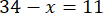 Od liczby 34 odejmij x i powstałą różnicę przyrównaj do 11: