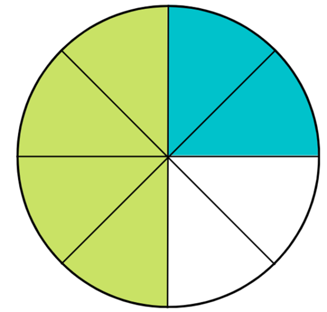 Kolorem np. niebieskim należy pokolorować dwie części, a np. zielonym inne trzy. Łącznie pokolorowano