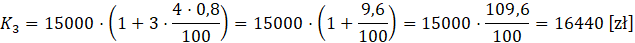 W tym zadaniu musisz obliczyć wartość lokaty pani Moniki po trzech latach, uwzględniając 20-procentowy podatek od dochodów kapitałowych, wiedząc, że na lokatę zostało wpłaconych 15 000 zł, a oprocentowanie wynosiło 4%.