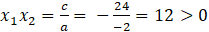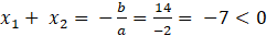 Za pomocą wzorów Viète’a oblicz iloraz miejsc zerowych funkcji. Ponieważ jest on dodatni, miejsca zerowe są tego samego znaku. Następnie sprawdź sumę miejsc zerowych – jest ona mniejsza od 0, więc oba miejsca zerowe są ujemne.
