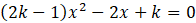 Aby równanie miało jedno rozwiązanie współczynnik przy x2 może być równy 0, wtedy otrzymane równanie jest liniowe. Współczynnik przy x jest różny od 0, więc równanie liniowe będzie miało 1 rozwiązanie niezależnie od wartości parametru przy k.