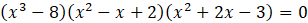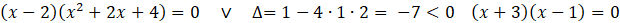 Aby znaleźć rozwiązania równania, każdy z czynników znajdujących się po lewej stronie przyrównaj do 0. Otrzymane równania połącz ze sobą alternatywą. Następnie rozwiąż osobno każde z równań i Zsumuj wyniki. W pierwszym równaniu skorzystaj ze wzoru skróconego mnożenia na różnicę sześcianów. Równania kwadratowe, których wyróżniki są ujemne, są sprzeczne. Zsumuj wszystkie otrzymane rozwiązania do jednego zbioru.