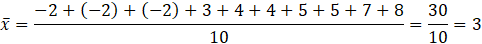 Zacznij od obliczenia średniej arytmetycznej liczb -2, -2, -2, 3, 4, 4, 5, 5, 7 i 8: