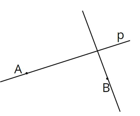 Uzupełnij: Odległość punktu B od prostej p wynosi 1 cm 7 mm.