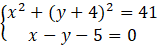 Rozwiąż układ równań, wyznaczając z równania prostej jedną niewiadomą, a następnie podstawiając zmienne do równania okręgu.
