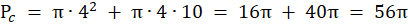 Oznacz wysokość stożka jako h. Z rysunku odczyta długości tworzącej i promienia. Wyznacz h z tw. Pitagorasa: Suma kwadratów długości przyprostokątnych trójkąta prostokątnego jest równa kwadratowi długości przeciwprostokątnej tego kwadratu. Oblicz objętość i pole powierzchni całkowitej korzystając ze wzorów: