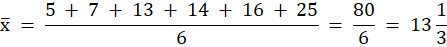 W tym zadaniu musisz obliczyć średnią arytmetyczną, medianę i dominantę zestawu liczb 16, 13, 7, 25, 14, 5