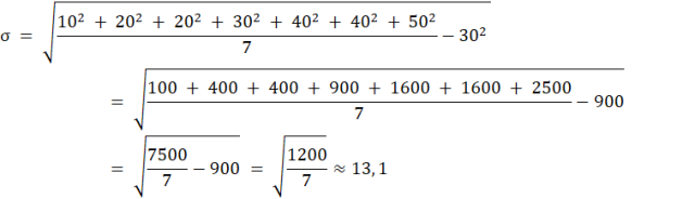 W tym zadaniu musisz obliczyć odchylenie standardowe liczb: 10, 20, 20, 30, 40, 40, 50