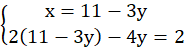 Aby rozwiązać równanie metodą podstawiania, w jednym z równań wyznacz niewiadomą, a następnie podstaw ją w drugim równaniu: