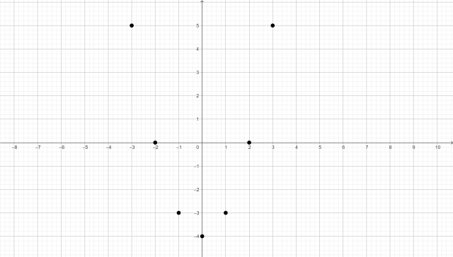 | f(x) | 5 | 0 | -3 | -4 | -3 | 0 | 5 |