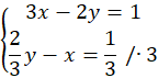 Pomnóż pierwsze równanie przez 3, aby otrzymać przy niewiadomej x liczby przeciwne, a następnie dodaj do siebie równania.