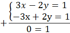 Niewiadome się redukują i zachodzi sprzeczność, że 0 = 1, więc żadna para liczb nie spełnia układu równań.