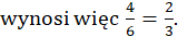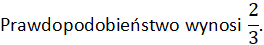 Rzut kostką może dać sześć wyników, a nas interesują 4 wyniki: 3,4,5,6. Prawdopodobieństwo