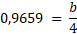 Mamy trójkąt prostokątny o bokach a, b i c oraz kątach ostrych α i β. Znamy wartości: c = 4 oraz