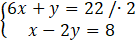 12x + 2y + x – 2y = 44 + 8