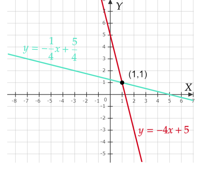 Rozwiązaniem graficznym podanego układu jest punkt przecięcia obu prostych na wykresie. Przekształć obie proste do wygodniejszej postaci, najlepiej kierunkowej. Do naszkicowania prostych stwórz ich tabelki, wybierz dwa dowolne argumenty i wyznacz odpowiadające im wartości ze wzoru. Sprawdzenie polega na wstawieniu współrzędnych punktu przecięcia do początkowych równań. Jeżeli wynik się zgadza, to znaczy, że punkt został wyznaczony poprawnie.