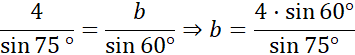 Wyznacz miarę kąta leżącego naprzeciwko boku o długości b: β = 180˚ - 45˚ - 75˚ = 60˚