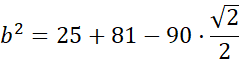 b2 = 52 + 92 – 2 ∙ 5 ∙ 9 ∙ cos 45˚