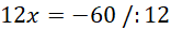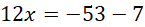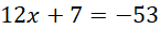 Aby uzupełnić trzecią kolumnę, musisz obliczyć, dla jakiego x funkcja f(x) = 12x + 7 przyjmuje wartość -53