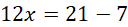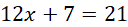 Aby uzupełnić drugą kolumnę, musisz obliczyć, dla jakiego x funkcja f(x) = 12x + 7 przyjmuje wartość 21