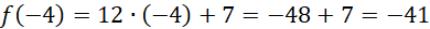 Aby uzupełnić pierwszą kolumnę podstaw -4 za x do wzoru funkcji f(x) = 12x + 7