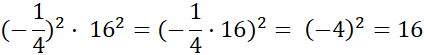 (-1,5)2 · (-8)2 = (-1,5 · -8)2 = 122 = 144