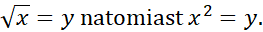 Pierwiastek kwadratowy to taka liczba większa od zera, która po podniesieniu do kwadratu da nam liczbę podpierwiastkową. Jest to więc odwrotność podnoszenia do kwadratu: