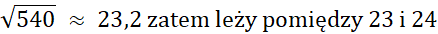 Wskaż między jakimi liczbami naturalnymi znajduje się: